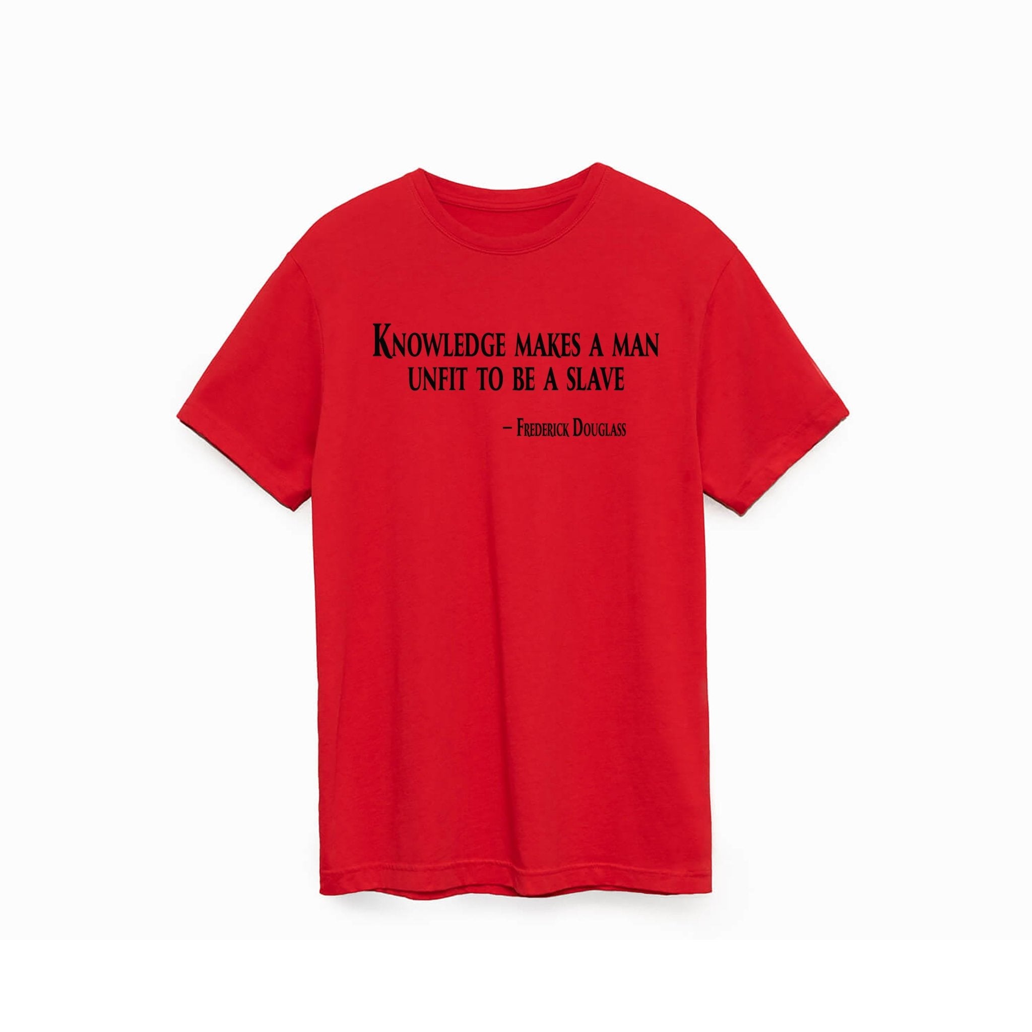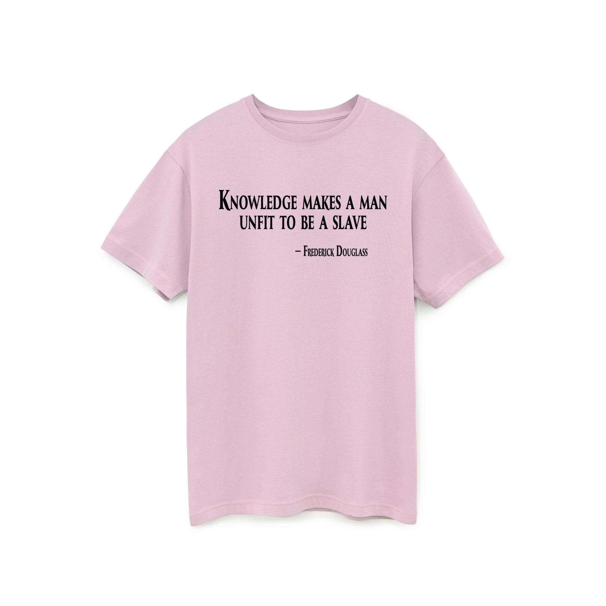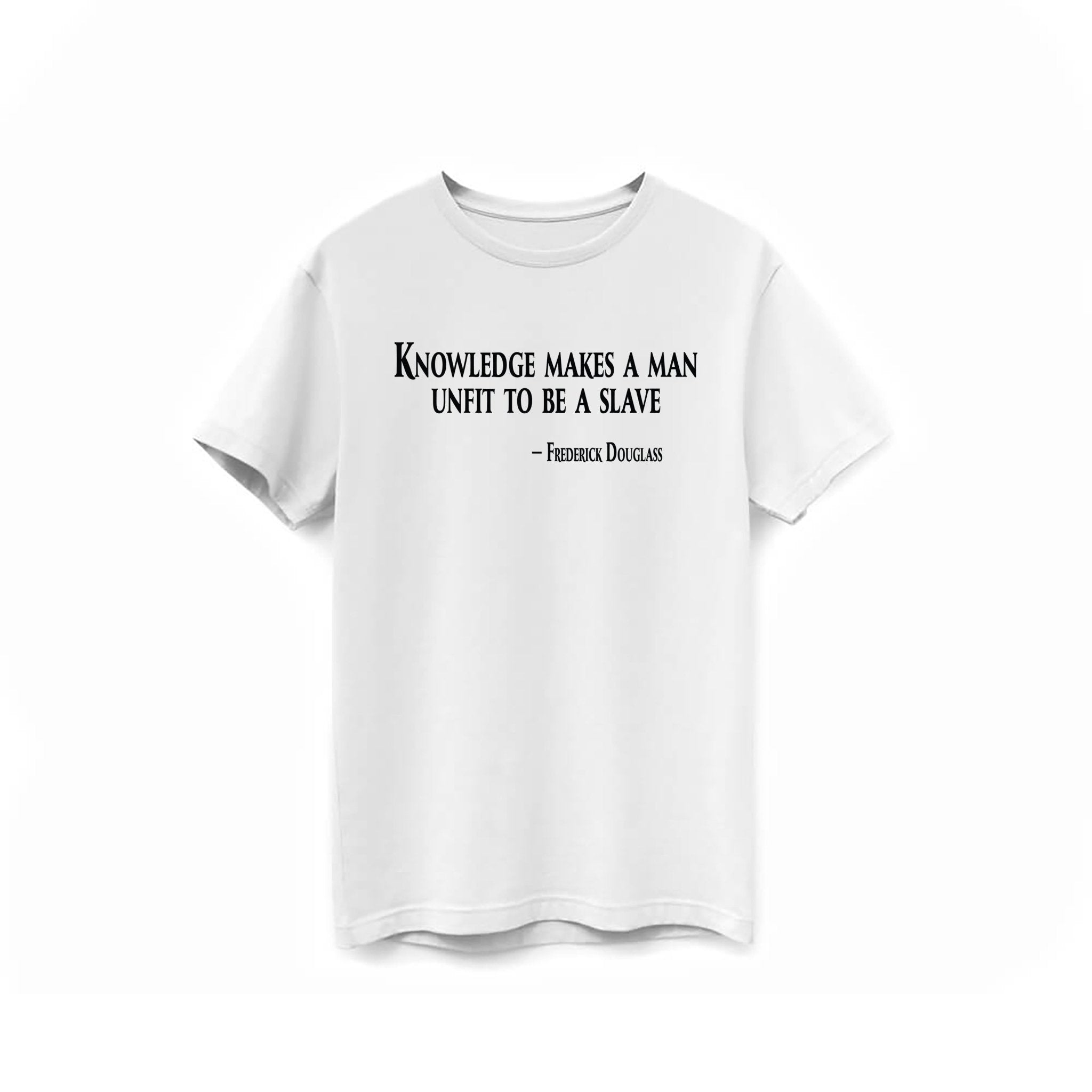 There is a quote on the front of this garment coined by Frederick Dougless. The Willie lynch Collection logo is displayed at the collar line on the back of the garment.